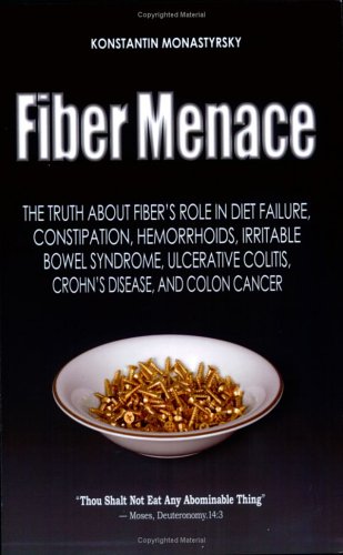 If you want to read more about this, good luck. You can try ordering this out of print Russian book called “Fiber Menace: The Truth About The Leading Role of Fiber in Diet Failure, Constipation, Hemorrhoids, Irritable Bowel Syndrome, Ulcerative Colitis, Crohn’s Disease and Colon Cancer” by Konstantin Monastyrsky. It probably doesn’t get more extreme than this. He is super mad at fiber.
